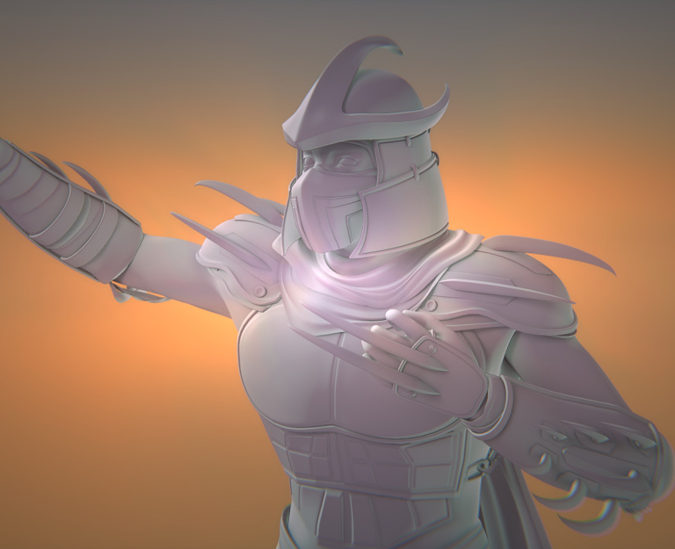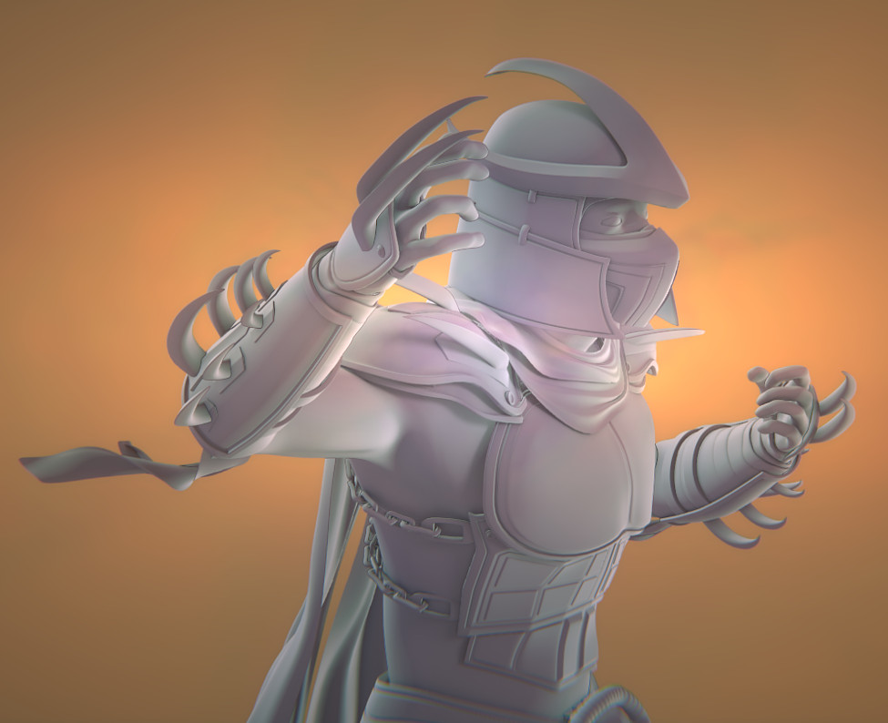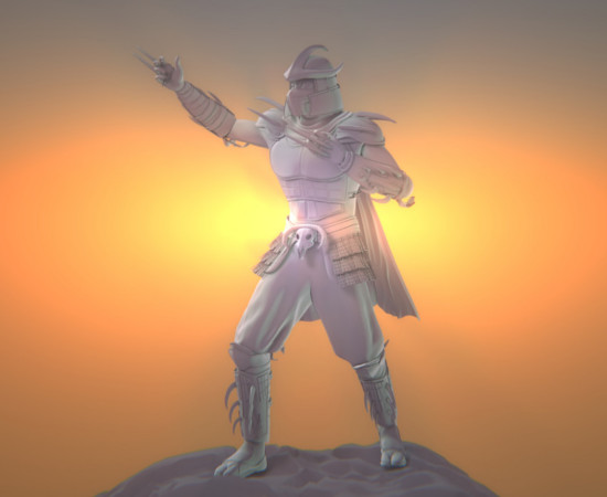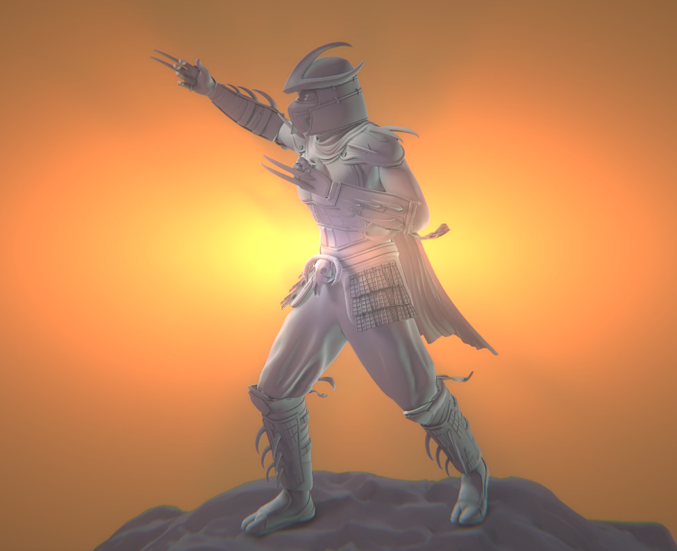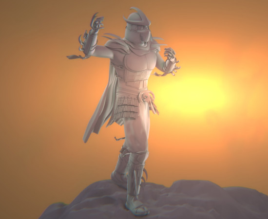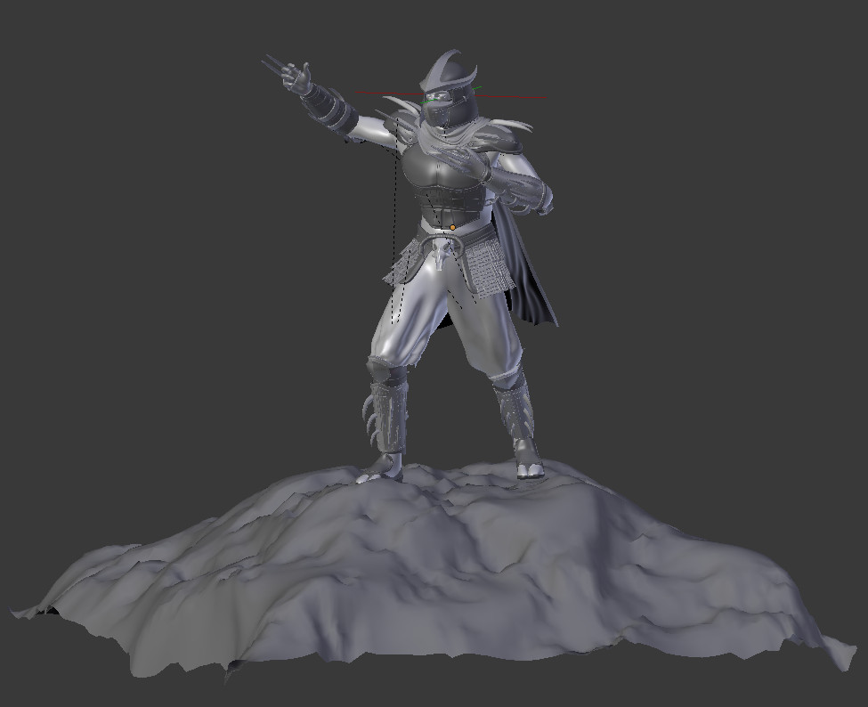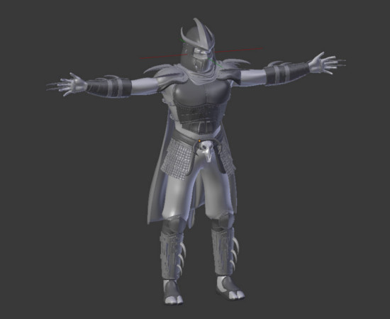 After achieving the basic forms using reference images of human anatomy as a guide, I then modelled additional details such as the clothing and armour. I also used Blenders physics engine to make the cloth look more organic by adding a wind simulator. Wanting to veer away from the tutorial slightly, I tried my hand at modeling the ninja turtles arch nemesis 'Oroku Saki' (The Shredder) loosely based on the original comics design. Using Blenders scene options and node editor I was able to get some nice filters on my final renders and give them a stylized appearance. Stage two will be to texture, colour and animate the character.