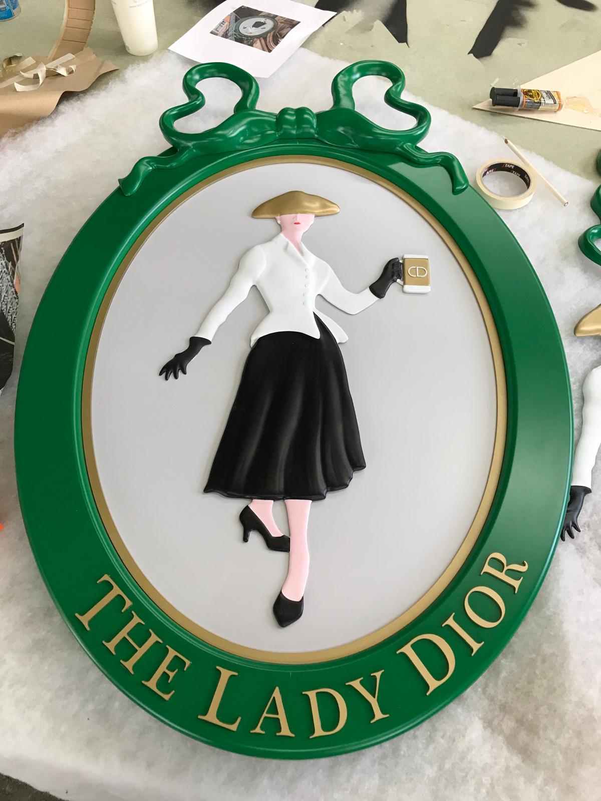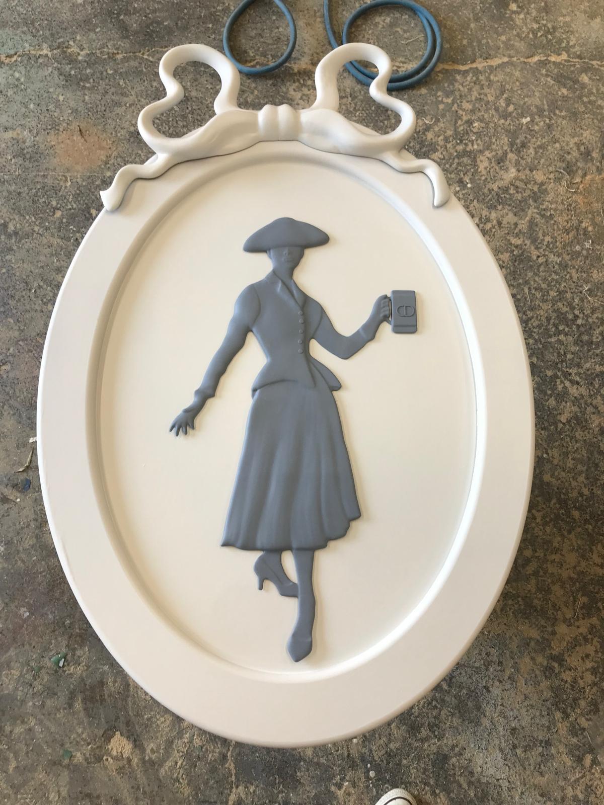 This was a commissioned project that required a pub sign of the the Lady Dior logo to be modeled as a relief.