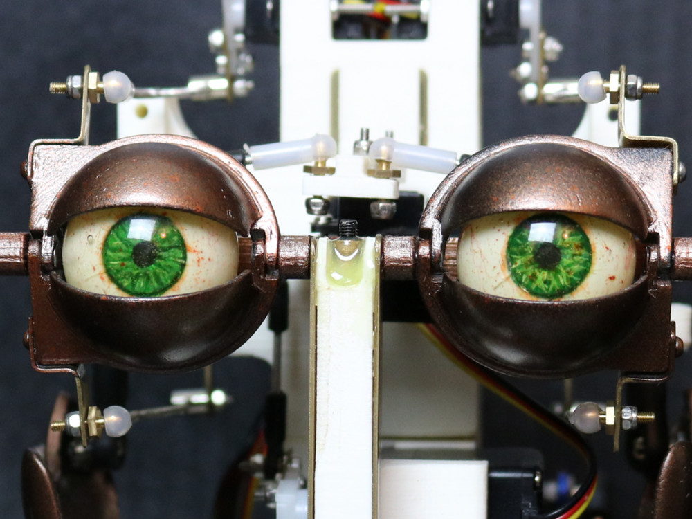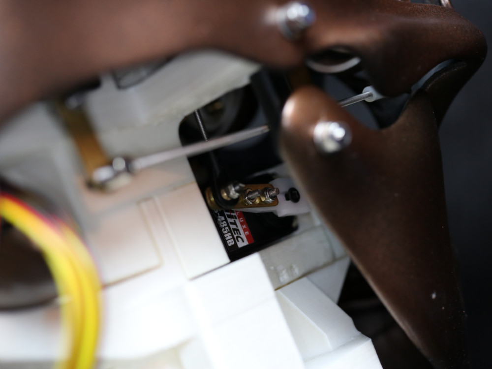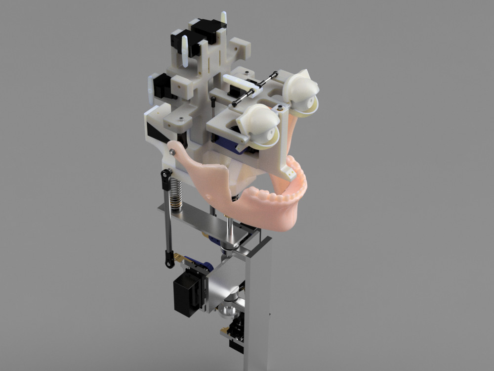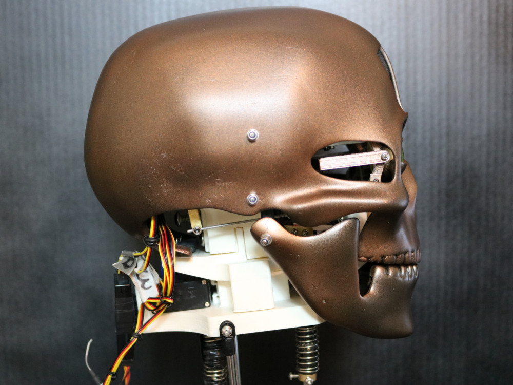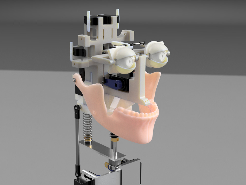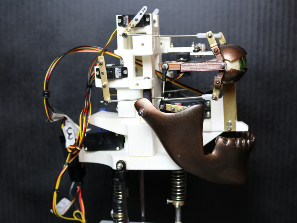 Using Autodesk Fusion 360, I modelled a mechanism that positioned the various motors relative to the moving parts, as well as supporting the outer skull. I also modelled the ball links, pulleys, screws, pushrods, servos and nearly all off-the-shelf parts I would require when building the head; this helped me visualize how it would all come together when printed. The tools in Fusion 360 allowed me to design, build and simulate the entire animatronic character from scratch in a 3D environment without having to fabricate prototypes out of metal or wood. The skull was modelled separately in Blender - See 3D Modelling In Blender.