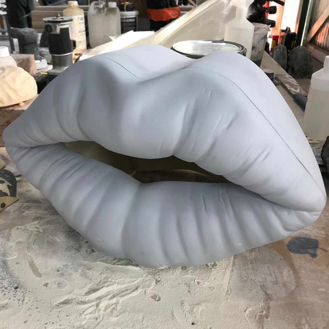 The lips were modelled in Zbrush, they were 3D printed then light weight foam casts were made, painted and finished ready for wearing by the talented team at Rocket Art .