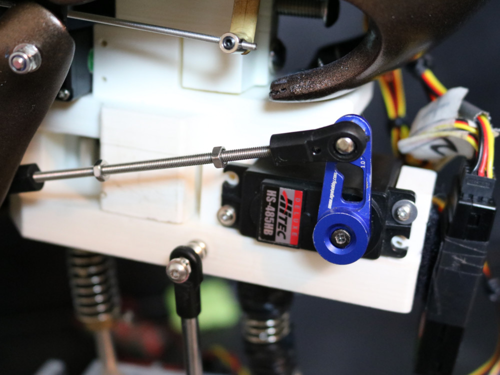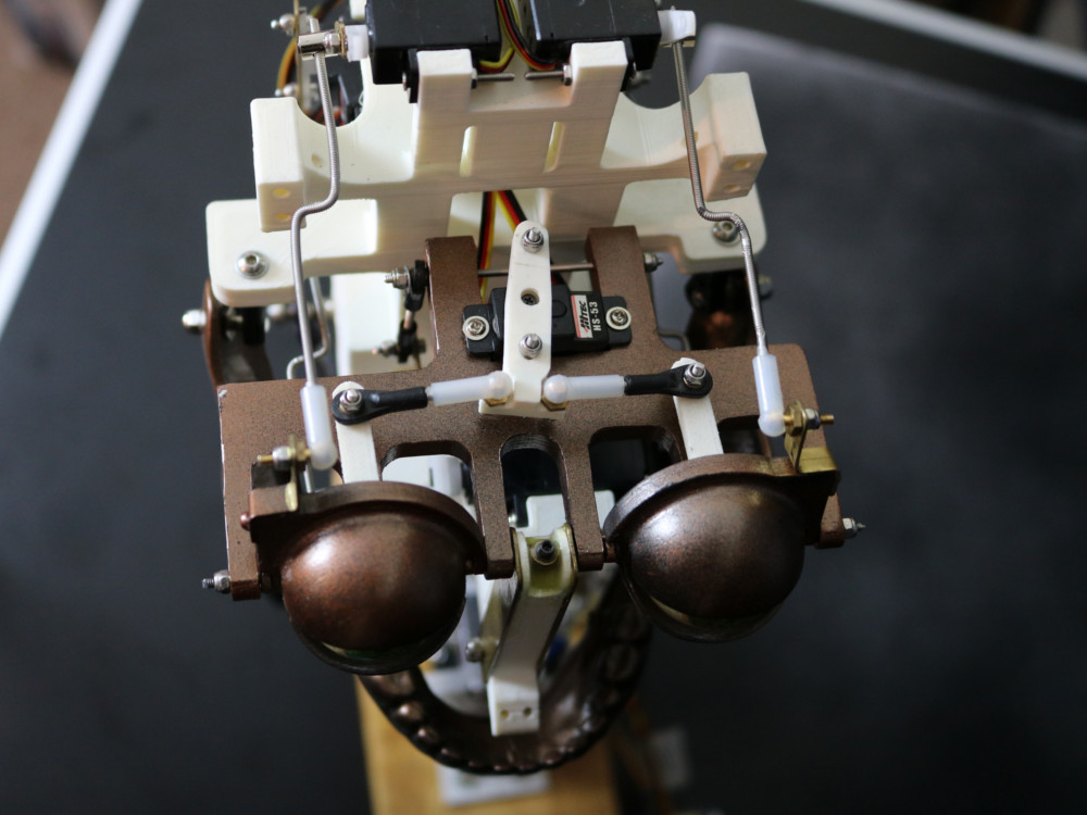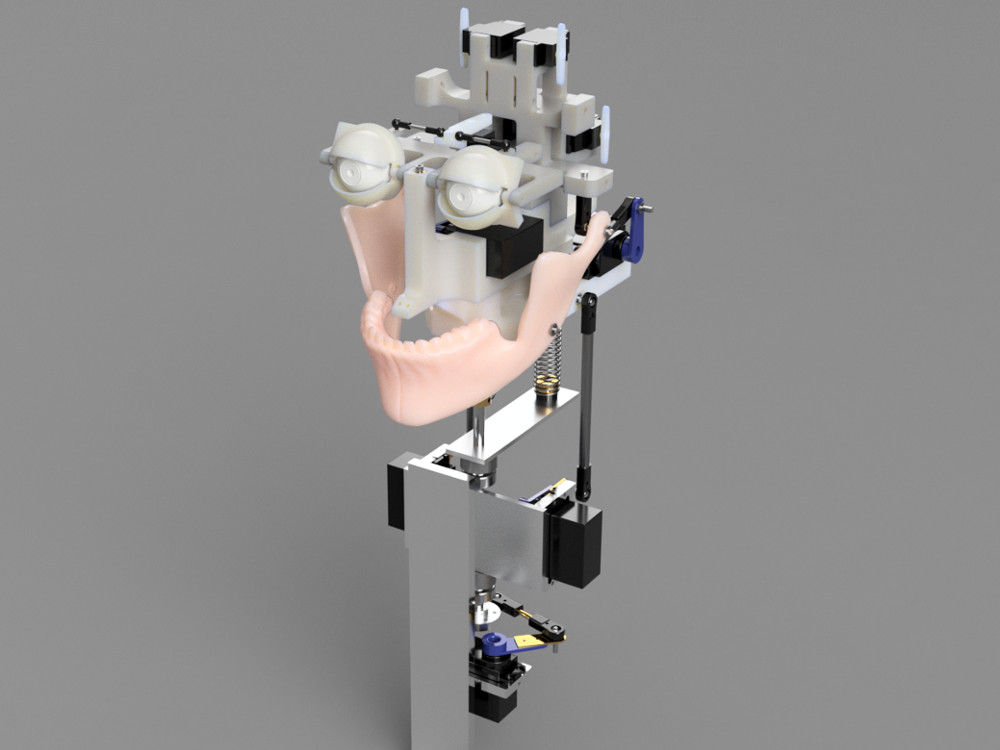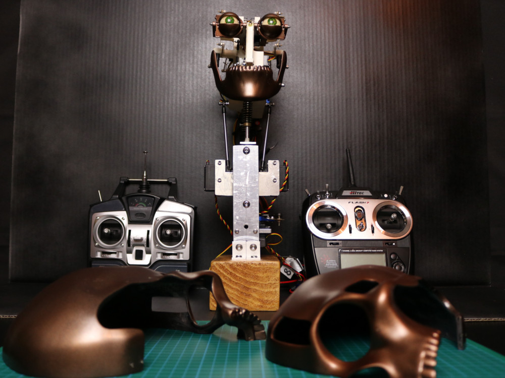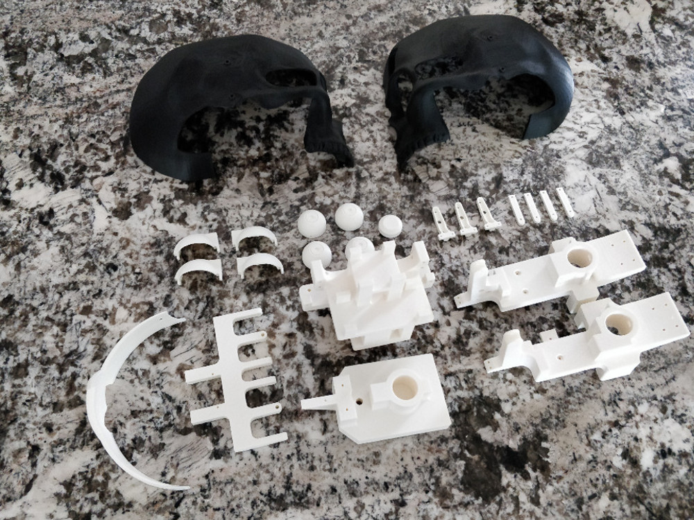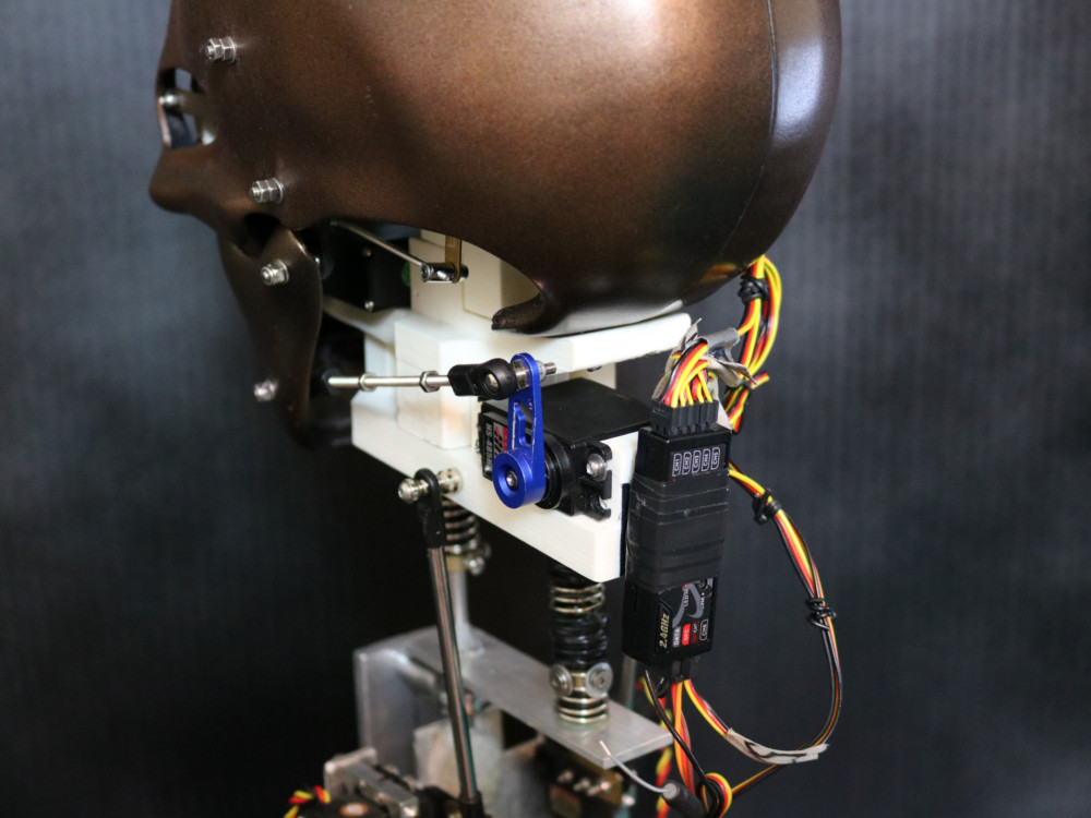 Using Autodesk Fusion 360, I modelled a mechanism that positioned the various motors relative to the moving parts, as well as supporting the outer skull. I also modelled the ball links, pulleys, screws, pushrods, servos and nearly all off-the-shelf parts I would require when building the head; this helped me visualize how it would all come together when printed. The tools in Fusion 360 allowed me to design, build and simulate the entire animatronic character from scratch in a 3D environment without having to fabricate prototypes out of metal or wood. The skull was modelled separately in Blender - See 3D Modelling In Blender.