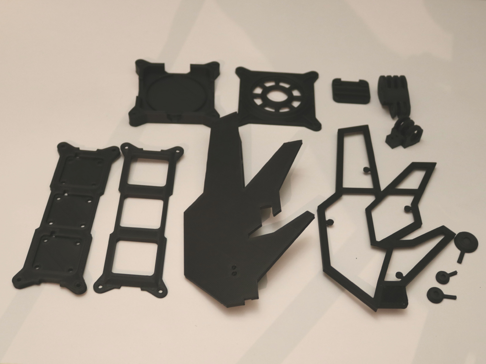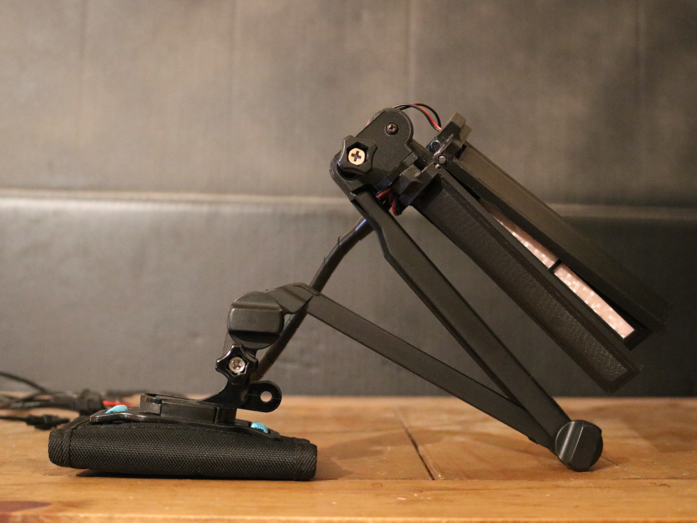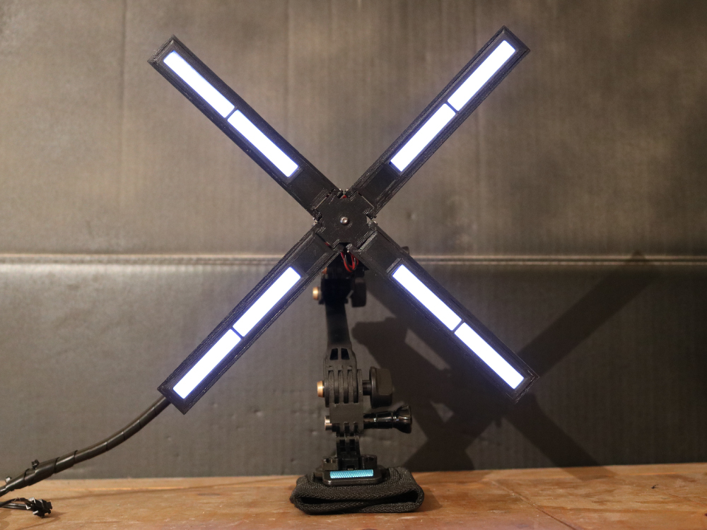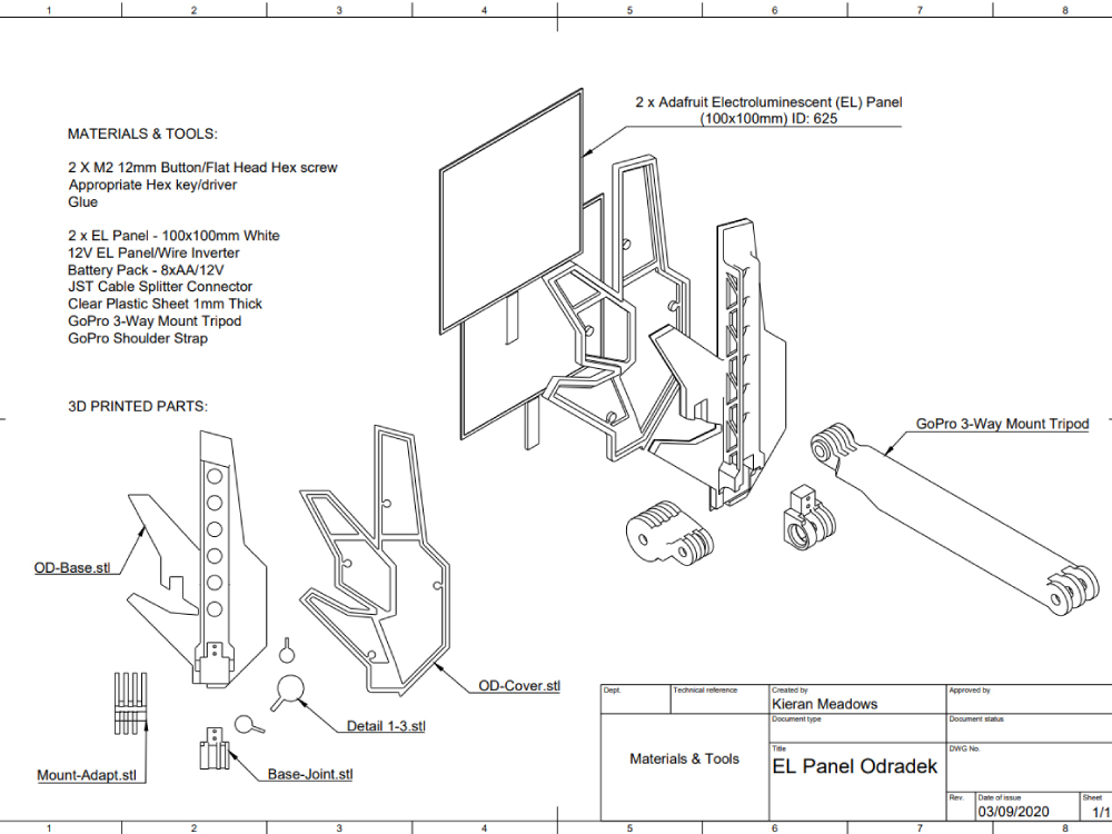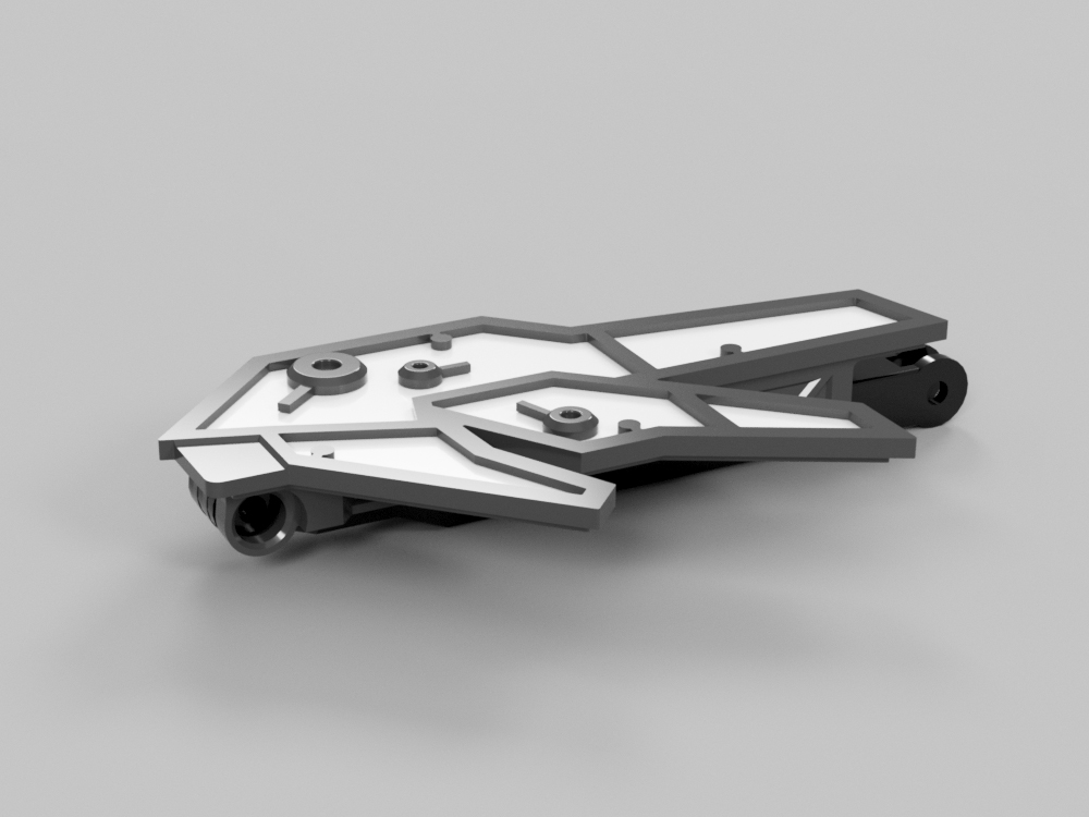 I modelled all the parts in Fusion 360 using a GoPro 3-Way Tripod Mount as a start point to minimize the amount of 3D printing needed for something like this to function and the tripod mount is a much stronger material than can be produced by FDM printing. I also wanted both designs to be collapsible and to sit comfortably on the wearers shoulder when not in use, so I designed a small adapter that would allow for the Tripod Mount to attach to a padded GoPro Backpack Strap Mount - enabling each prop to fit onto any backpack. There are a few external wires that can easily be zip-tied up or placed inside some cable housing to lead the electronics and battery into the backpack.